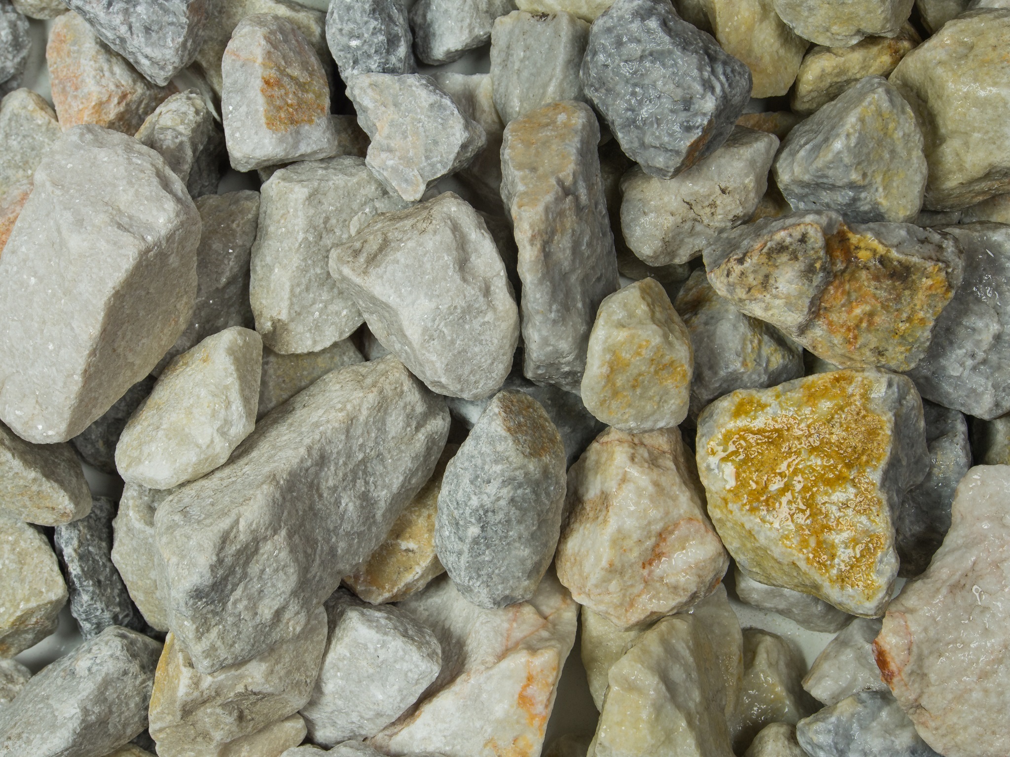 Gebrochenes oder gerundetes Gestein zum Füllen von Gabionen.