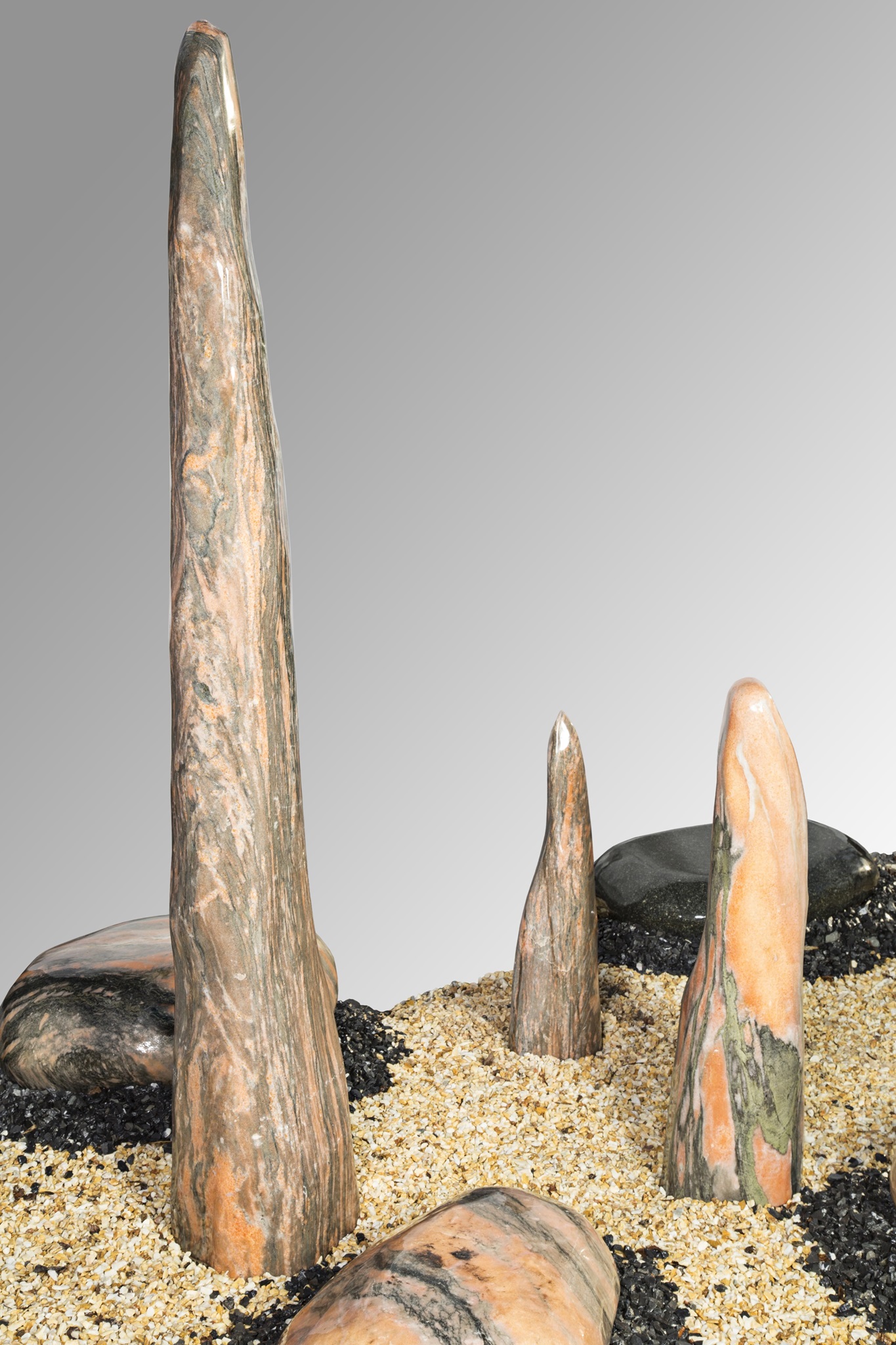 Viele unserer Kunden bevorzugen die natürliche Wirkung eines Monolithen und beschränken sich bei der Pflege auf das Nötigste. Ein bisschen Wasser, eine Handbürste und der Stein sieht wieder sauber aus.