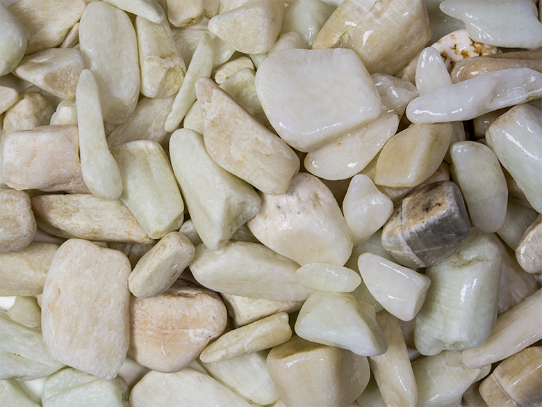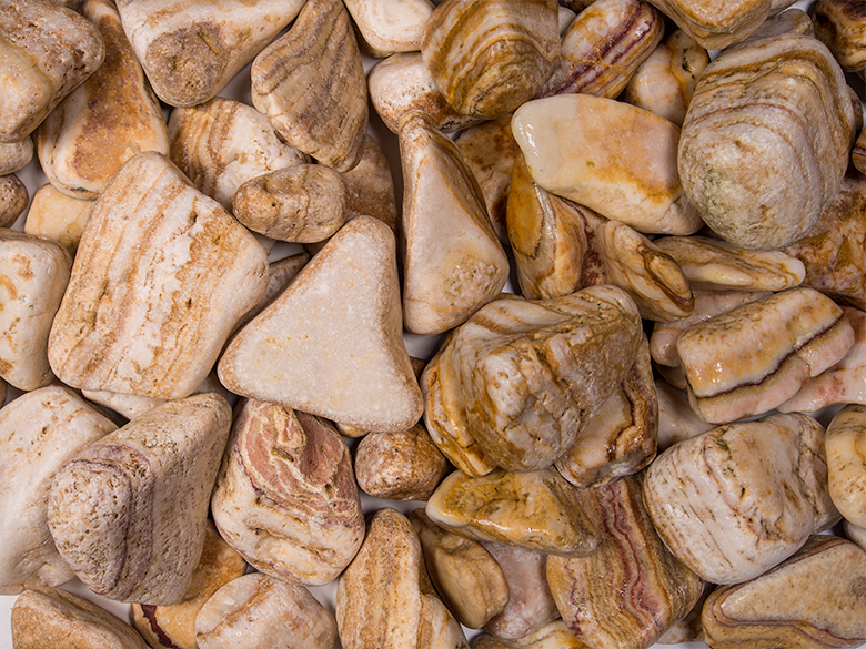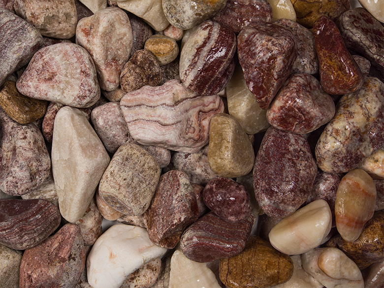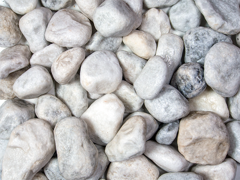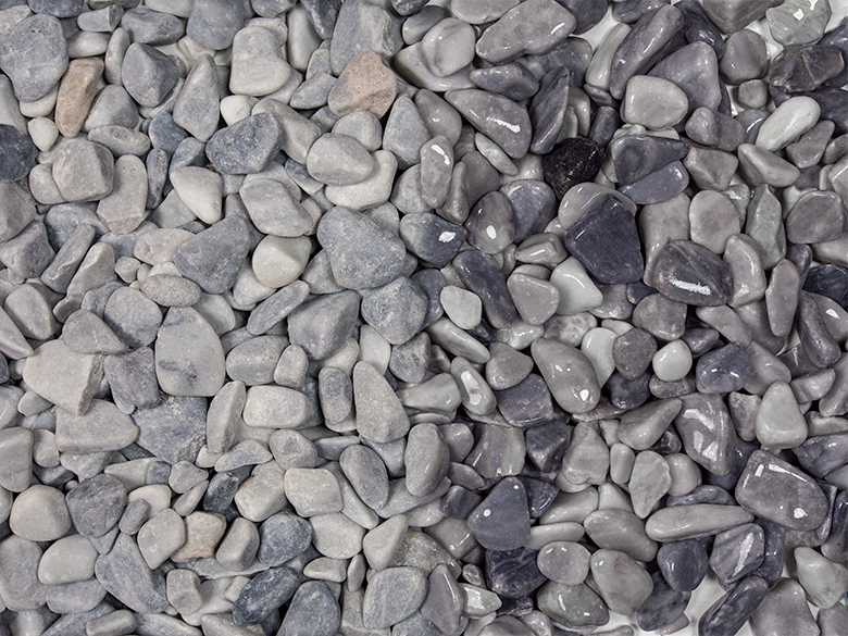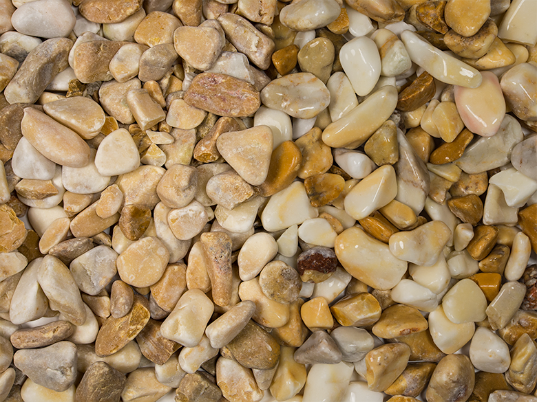 Rund geschliffene Steine die meistens in einer Korngröße von 5–60 mm angeboten werden.
