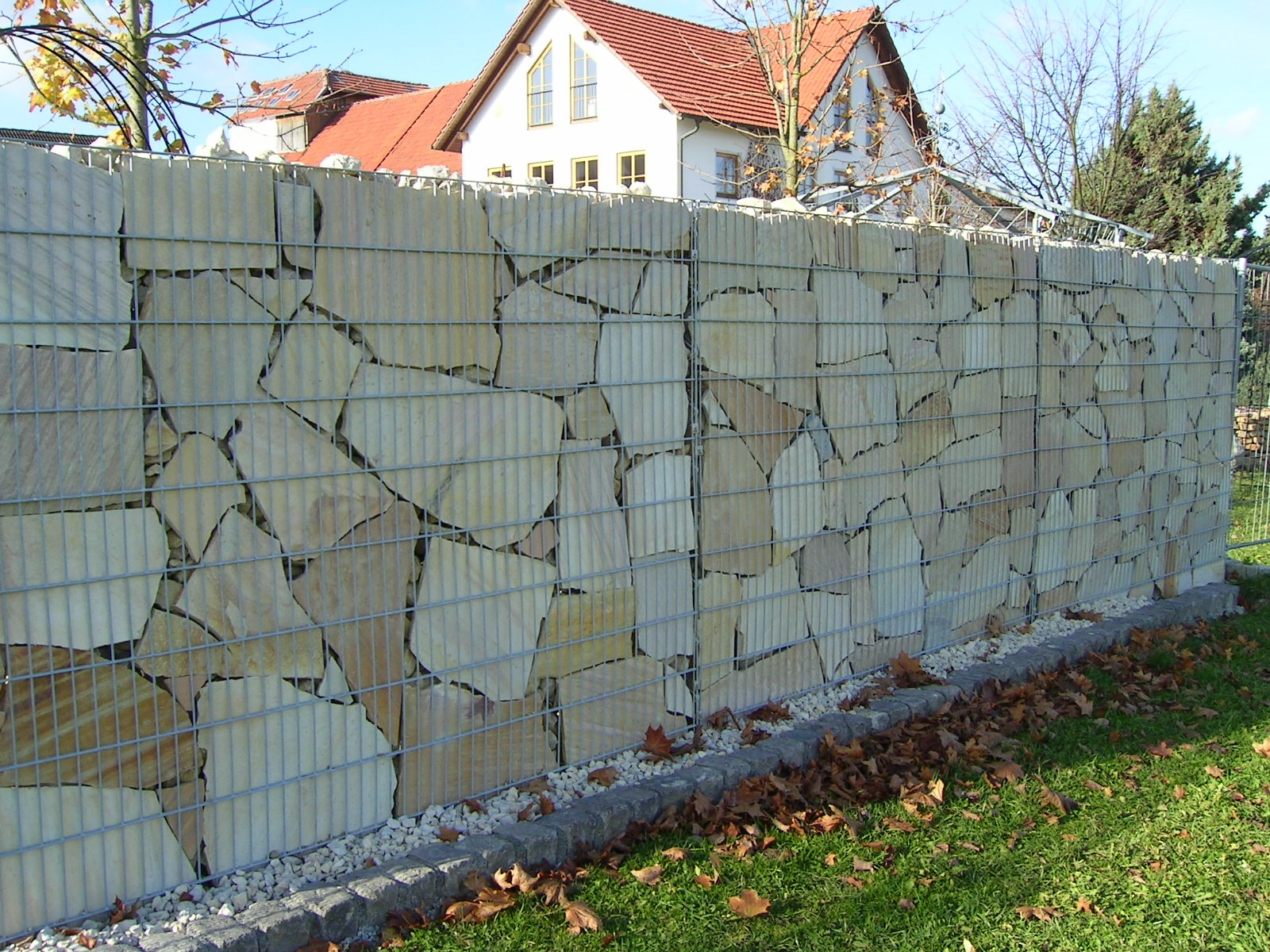 Das Wort „Gabione“ lässt sich von dem italienischen „gabbione“ ableiten, was übersetzt „Schanzkorb“ bedeutet. Der Begriff hat also einen militärischen Ursprung. Auch wenn sich gelegentlich ein Kunde hinter seiner Gabione verschanzen möchte. Wir versuchen Ihnen während unserer Beratung eine optimale Mischung aus dem Schutz Ihrer Privatsphäre und einem aufgelockerten gestalterischen Element aufzuzeigen.