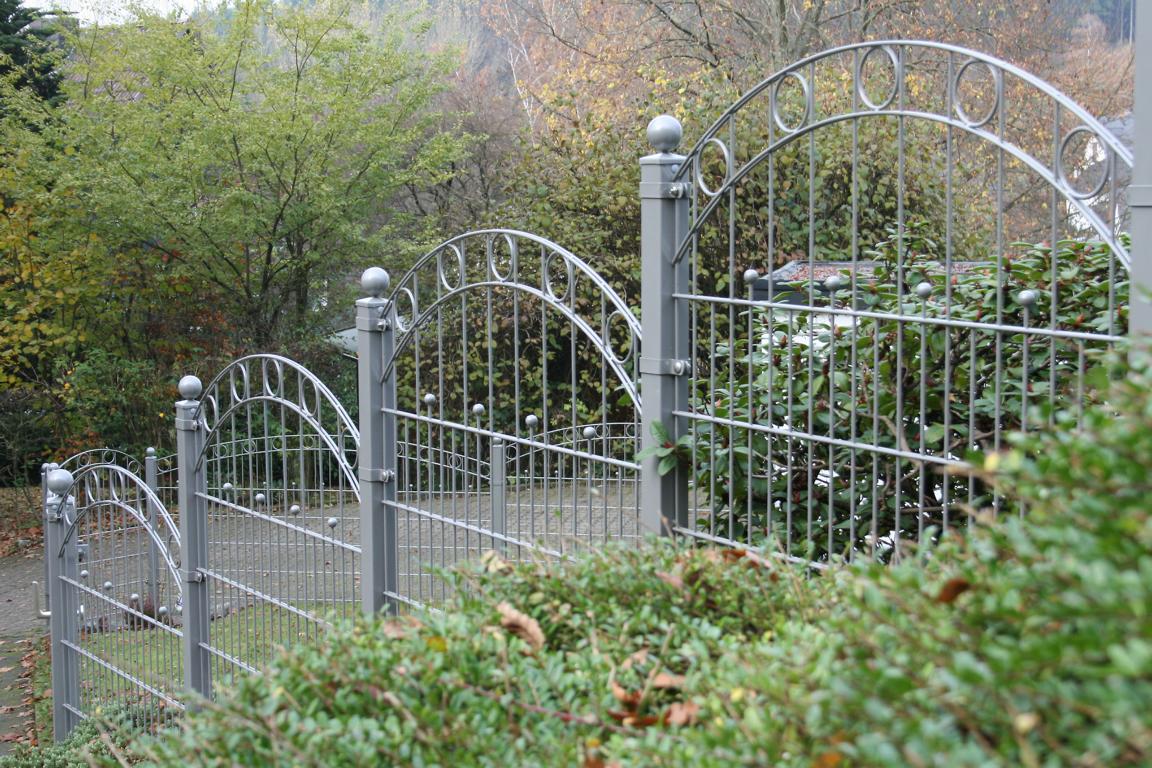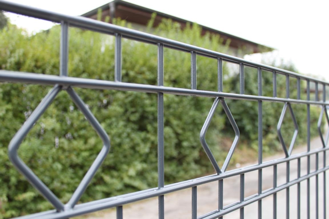 Schmuckzäune bieten die Vorteile einer Doppelstabmatte und bestechen zusätzlich durch verschiedene Zierelemente mit ganz eigenem Design. Im oberen Bereich der Gittermatte haben sie Ornamente aus Kreisen und Rauten oder auch Oberbögen mit Zierkugeln. Mit einer solchen Schmuckzaunmatte machen Sie den „einfachen“ Doppelstabzaun zu einem stilvollen Element in Ihrem Garten. Erhältlich sind alle Schmuckzäune in den Standardfarben feuerverzinkt, moosgrün, anthrazit. Sonderfarben sind auf Wunsch erhältlich. Bitte kontaktieren sie uns für weiter Informationen zu den Schmuckzäunen.